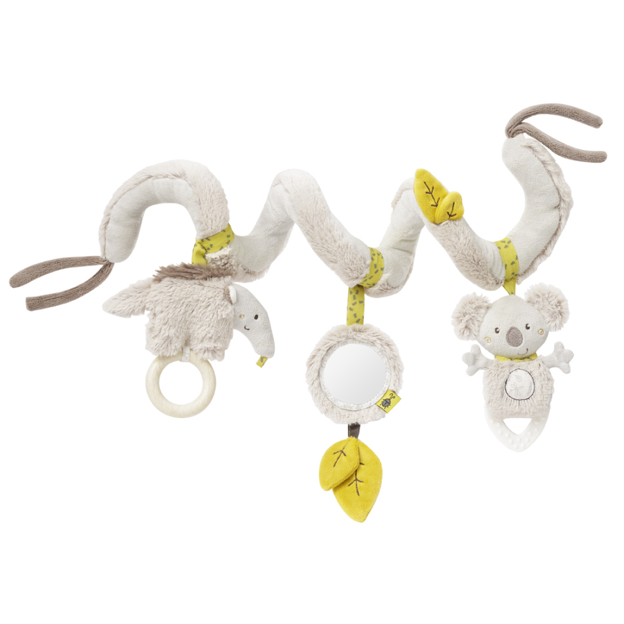 Aktivity spirála Australia je roztomilým doplňkem na hraní pro Vaše zlatíčko. Díky svému flexibilnímu tvaru je možné ji využít v kočárku, dětské postýlce, na cestách v autě, ale i všude tam, kde to uznáte za vhodné. Obsahuje několik prvků, které zaměstnají všechny vjemy děťátka. Chrastítko zaujme zvědavé dětské ouška, zrcátko láká očka a využití různých materiálů a také integrovaného kousátka, se postarají o to, že hračka zaměstná opravdu všechny smysly Vašeho maličkého.