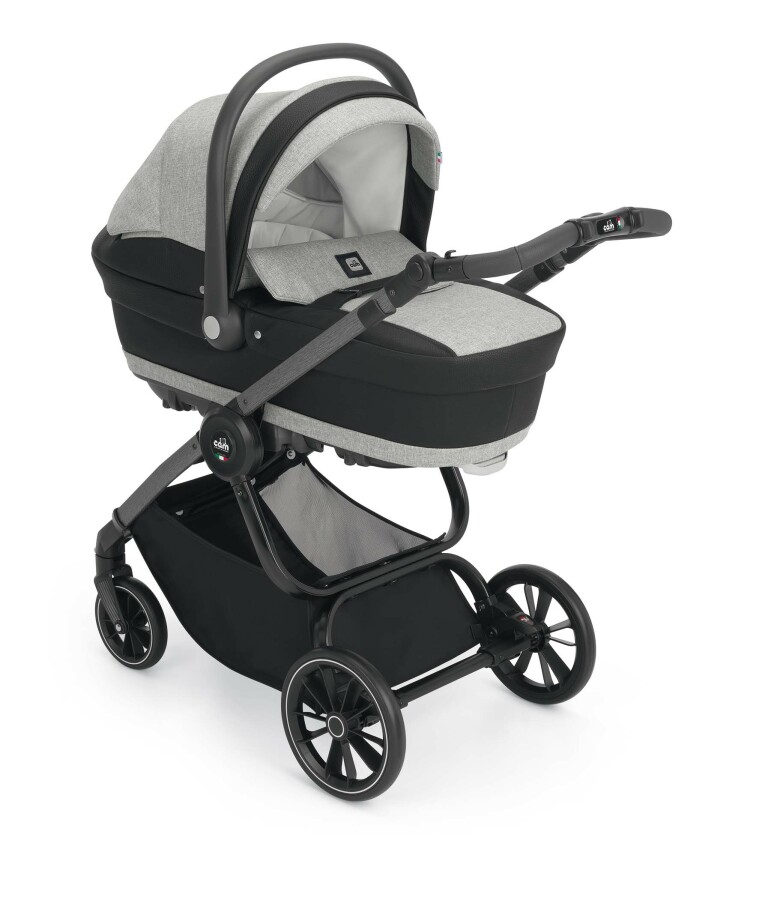 Prostorná elegantní korba je potažená texturovanou tkaninou s ozdobnými prvky z eko kůže. Nánožník hluboké korby lze snadno odepnout pomocí zipů. Díky větrání na boudičce je ideální i pro letní měsíce. Korbu lze po vyklopení vzpěr na spodku vaničky využívat i jako kolébku. Pomocí pojistky na spodku korby je možné výškově polohovat hlavičku dítěte. Korba má jednoduchý systém odepnutí z podvozku, pouze pomocí jedné pojistky, pro ještě větší bezpečí při manipulaci s korbou a dítětem.