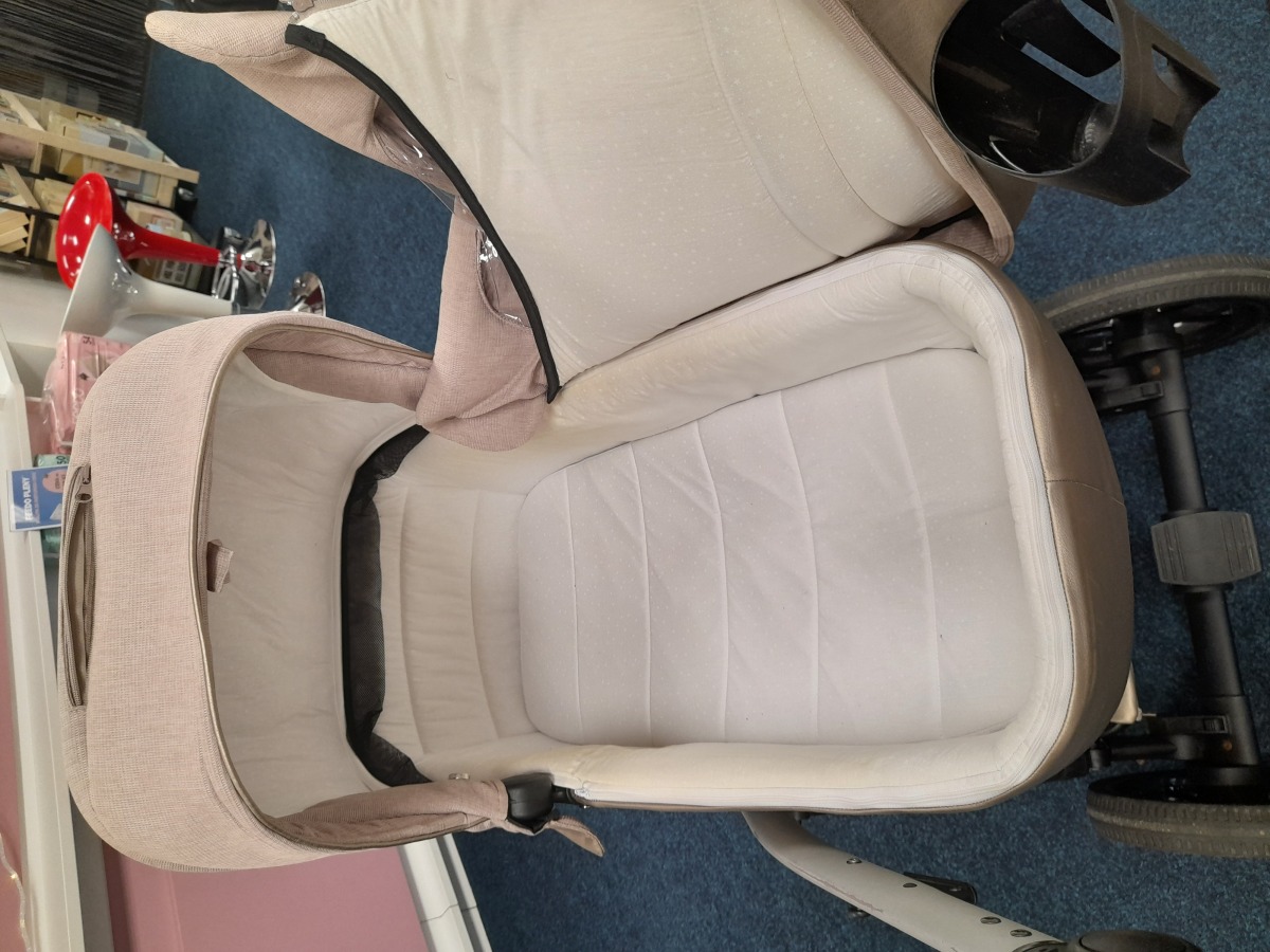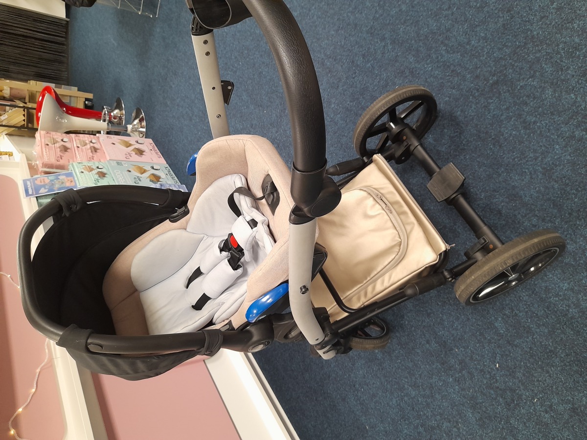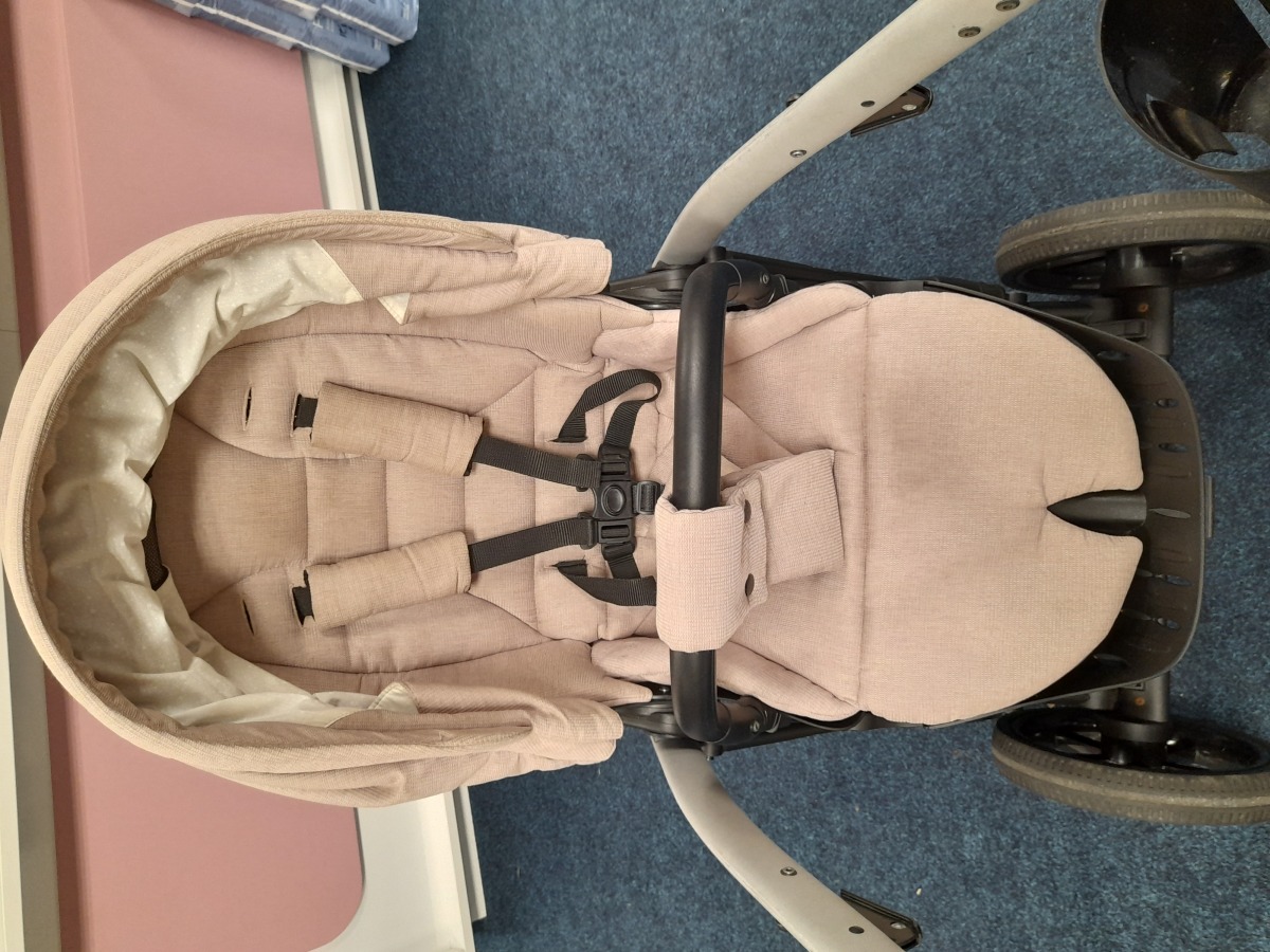 Kočárek je v dobrém stavu, součástí kočárku autosedačka Jasmine včetně isofixové základny, rukávník Jasmine, pláštěnka, moskytiéra, držák pití.