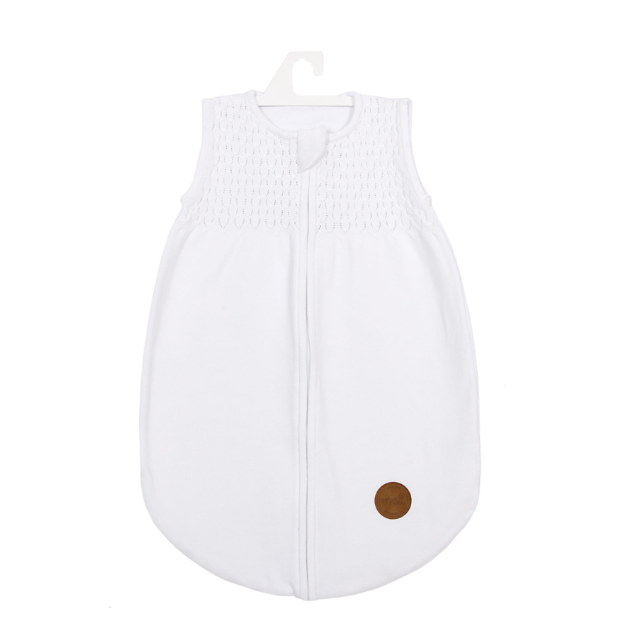 Lehký a na dotek velmi příjemný spací pytel z pleteniny, vyroben ze směsové příze s bavlnou, hebký a prodyšný. Zajistí teplíčko a pohodlí bez odkopávání. Díky rozšířenému tvaru bude mít miminko prostor pro pohyb nožiček. Otvor pro hlavu a ručičky dítěte byl velmi pečlivě navržen a díky tomu dítě neproklouzne dovnitř.