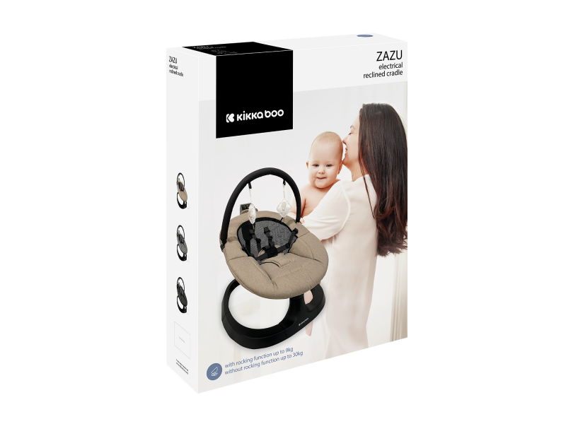 Elektrické houpací lehátko KikkaBoo Zazu je navrženo tak, aby miminku poskytovalo maximální komfort, bezpečí a jemné houpání, které uklidňuje a napomáhá odpočinku. Díky chytrým funkcím, tichému provozu a kvalitní konstrukci se rychle stane oblíbeným místem pro odpočinek i hraní. Nabízí zcela tichý provoz, díky kterému může miminko nerušeně spát. Lehátko nabízí dvě využití: od narození do 9 kg jako houpací lehátko a až do 30 kg jako pevné křesílko.