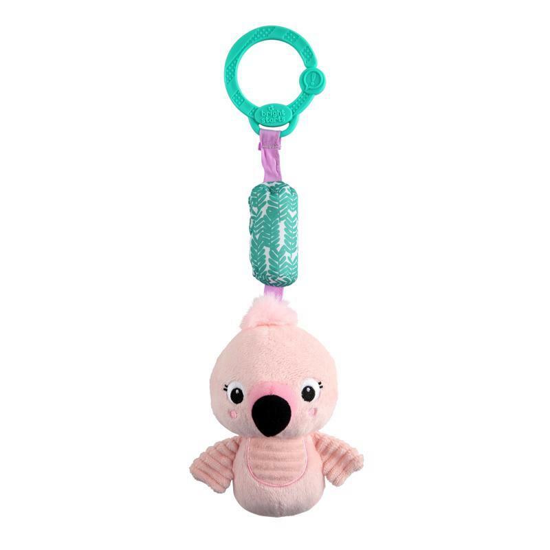 Hračka plyšová chrastítko na C kroužku Chime Along Friends plameňák 0m+