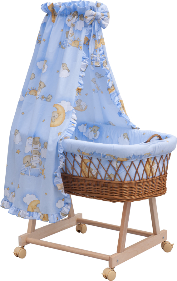 Proutěný koš na miminko s nebesy Mráček - modrá