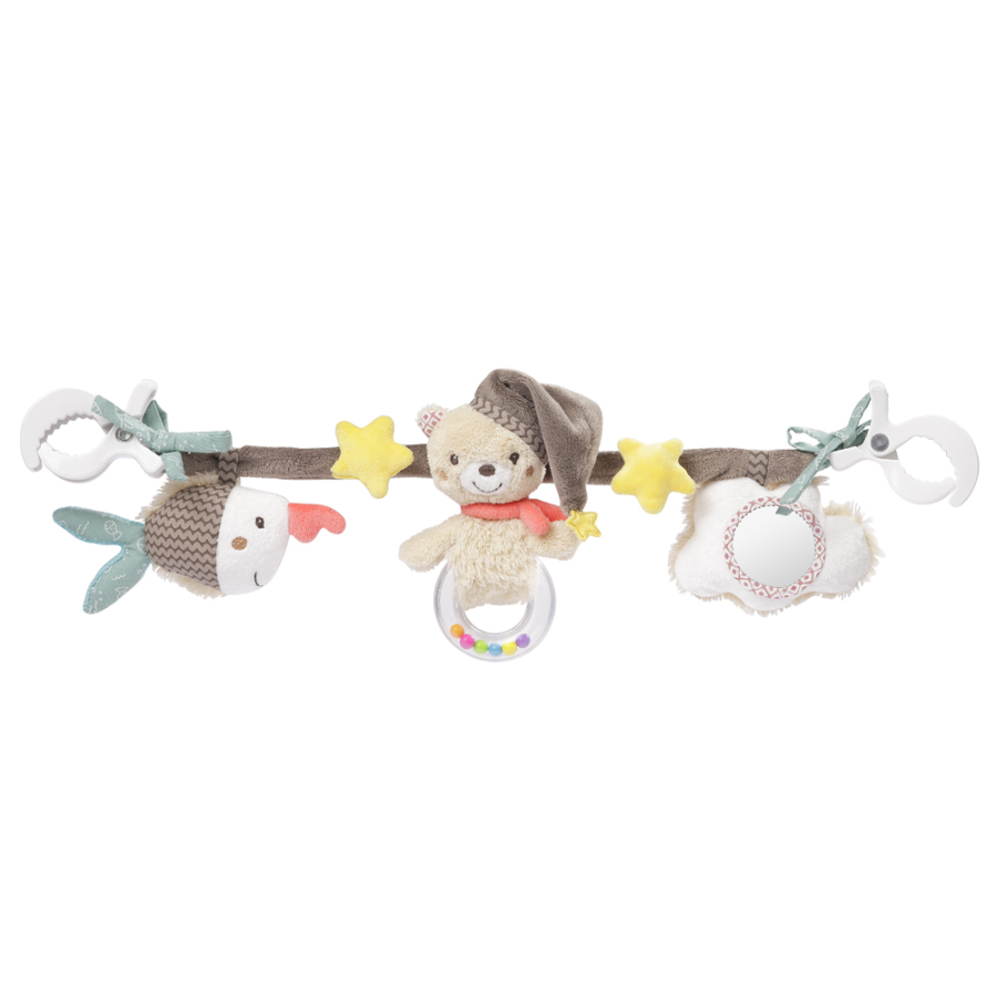 Přívěšky jsou navrženy tak, aby dítě mělo potřebu je zkoumat, objevovat a aby podporovaly motorické dovednosti dítěte a koordinaci rukou a očí. Snadno uchopitelné pro dětské ručičky. Dvě svorky umožnují rychlé, snadné a pružné připevnění ke kočárku, sedáku nebo postýlce.