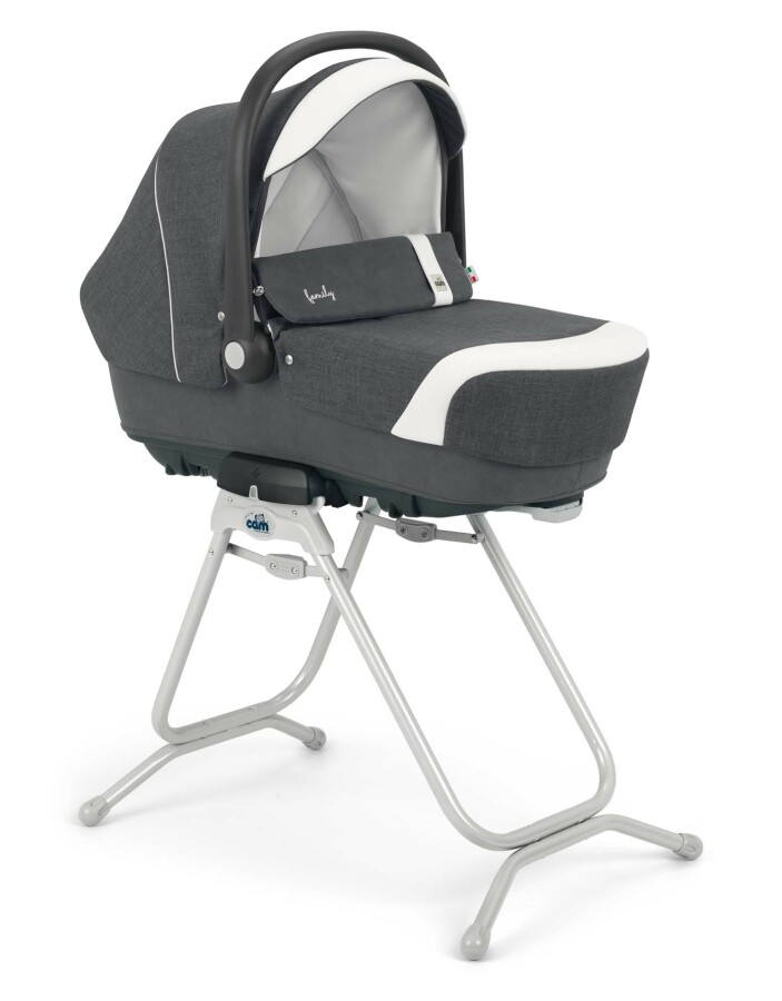 Stojan je vybavený praktickým systémem uchycení / uvolnění hluboké korby, sportovního sezení nebo autosedačky.